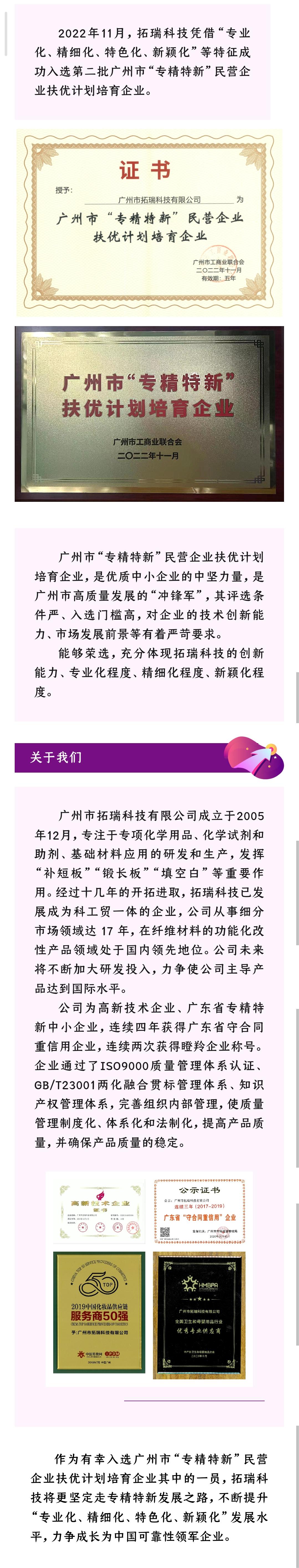 拓瑞科技入选广州市“专精特新”民营企业扶优计划培育企业